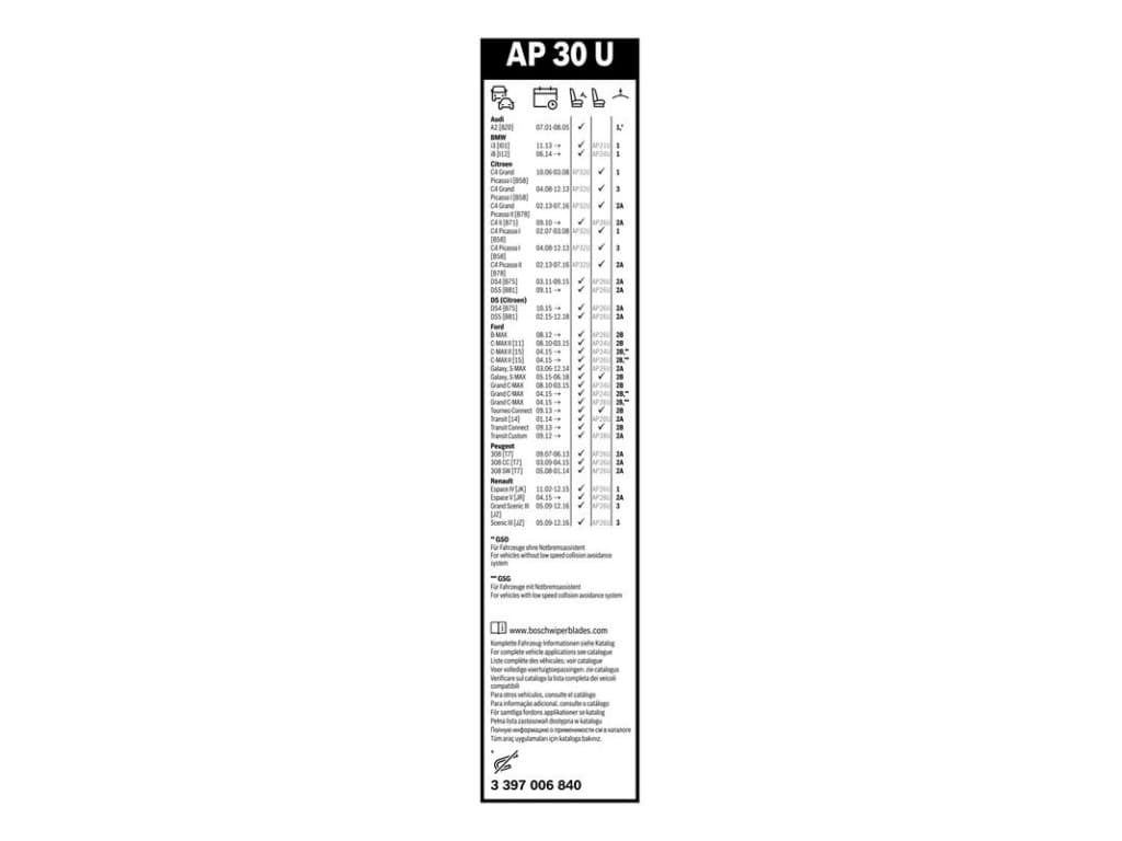 Limpiaparabrisas Bosch Aerotwin AP30U - Longitud: 750 mm - limpiaparabrisas simple para