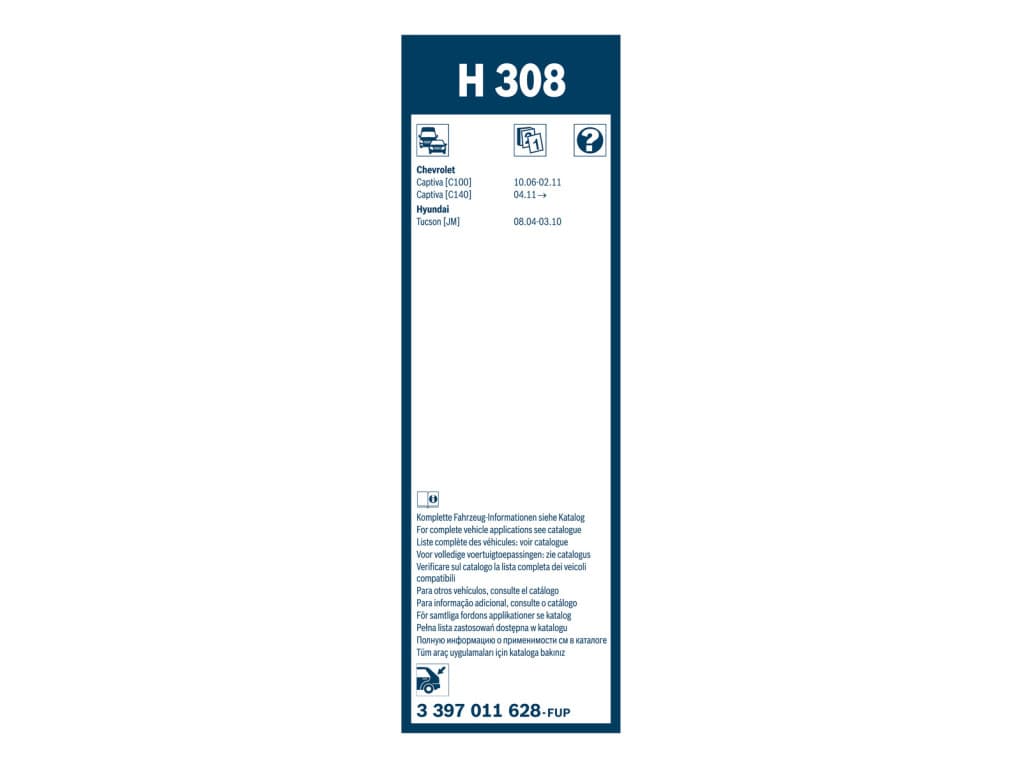 Escobilla limpiaparabrisas trasera Bosch H308 - Longitud: 300 mm - escobilla limpiaparabrisas trasera