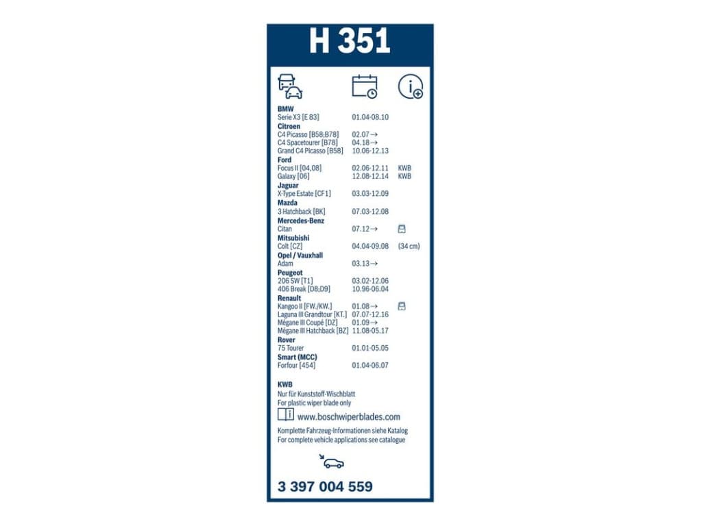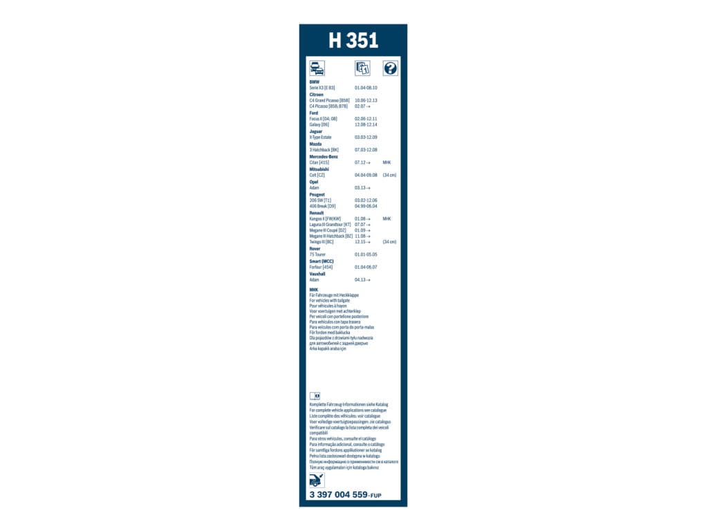 Escobilla limpiaparabrisas trasera Bosch H351 - Longitud: 350 mm - escobilla limpiaparabrisas trasera