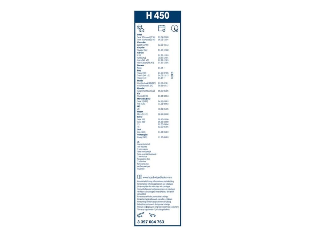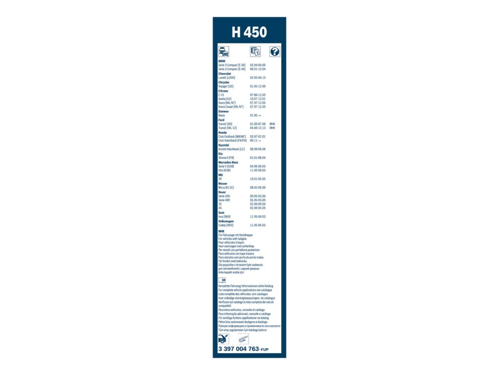 Escobilla limpiaparabrisas trasera Bosch H450 - Longitud: 450 mm - escobilla limpiaparabrisas trasera