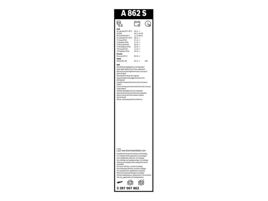 Limpiaparabrisas Bosch Aerotwin A862S - Longitud: 600/530 mm - juego de escobillas limpiaparabrisas para