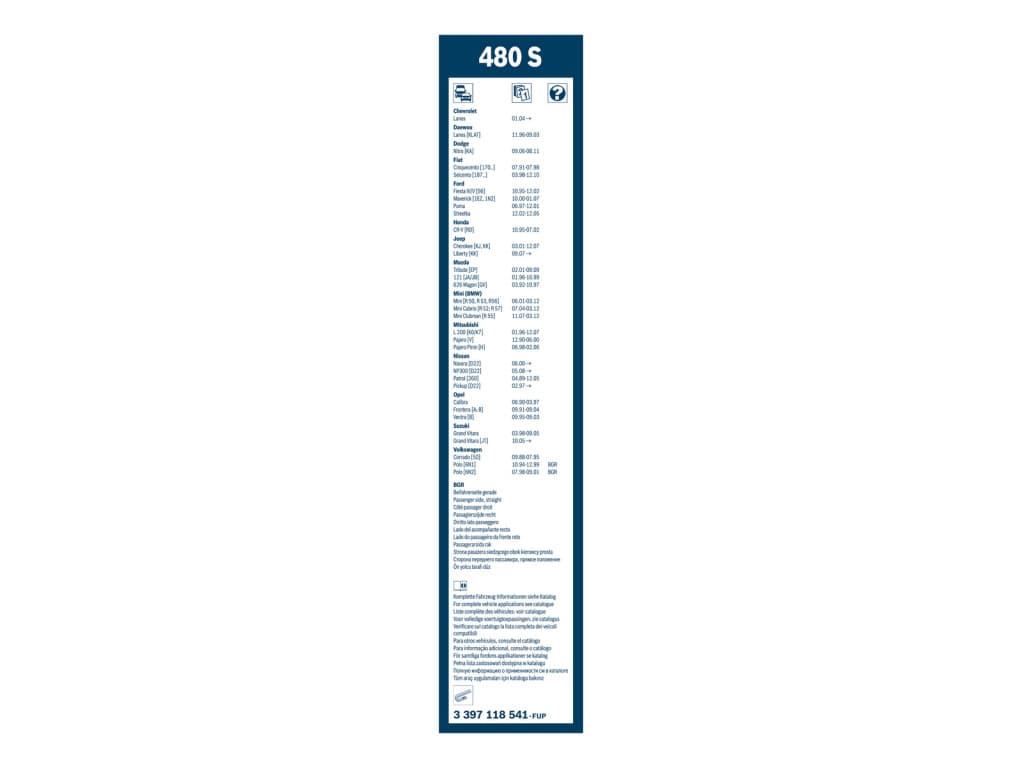Limpiaparabrisas Bosch Twin 480S - Longitud: 475/475 mm - juego de escobillas limpiaparabrisas para