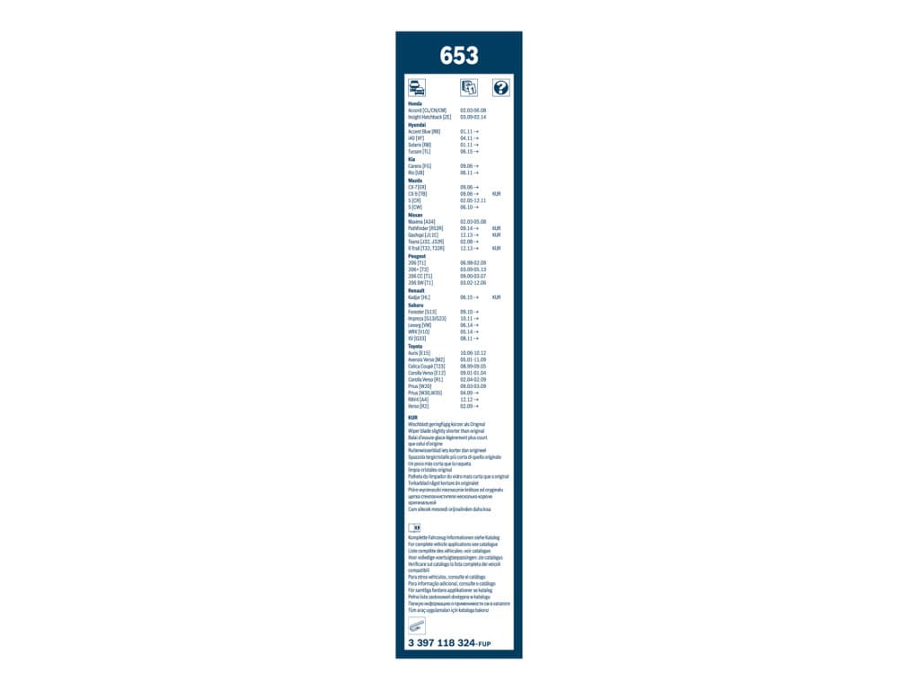Escobillas limpiaparabrisas Bosch Twin 653 - Longitud: 650/400 mm - juego de escobillas limpiaparabrisas delanteras