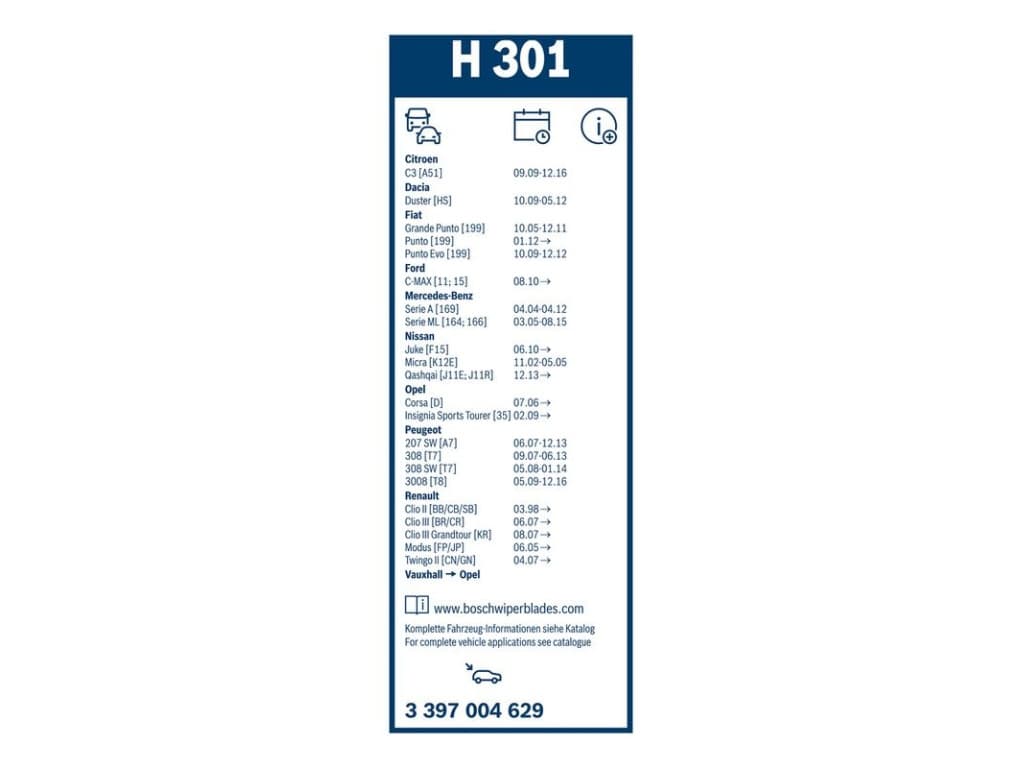 Paquete económico de escobillas limpiaparabrisas Bosch A295S + H301